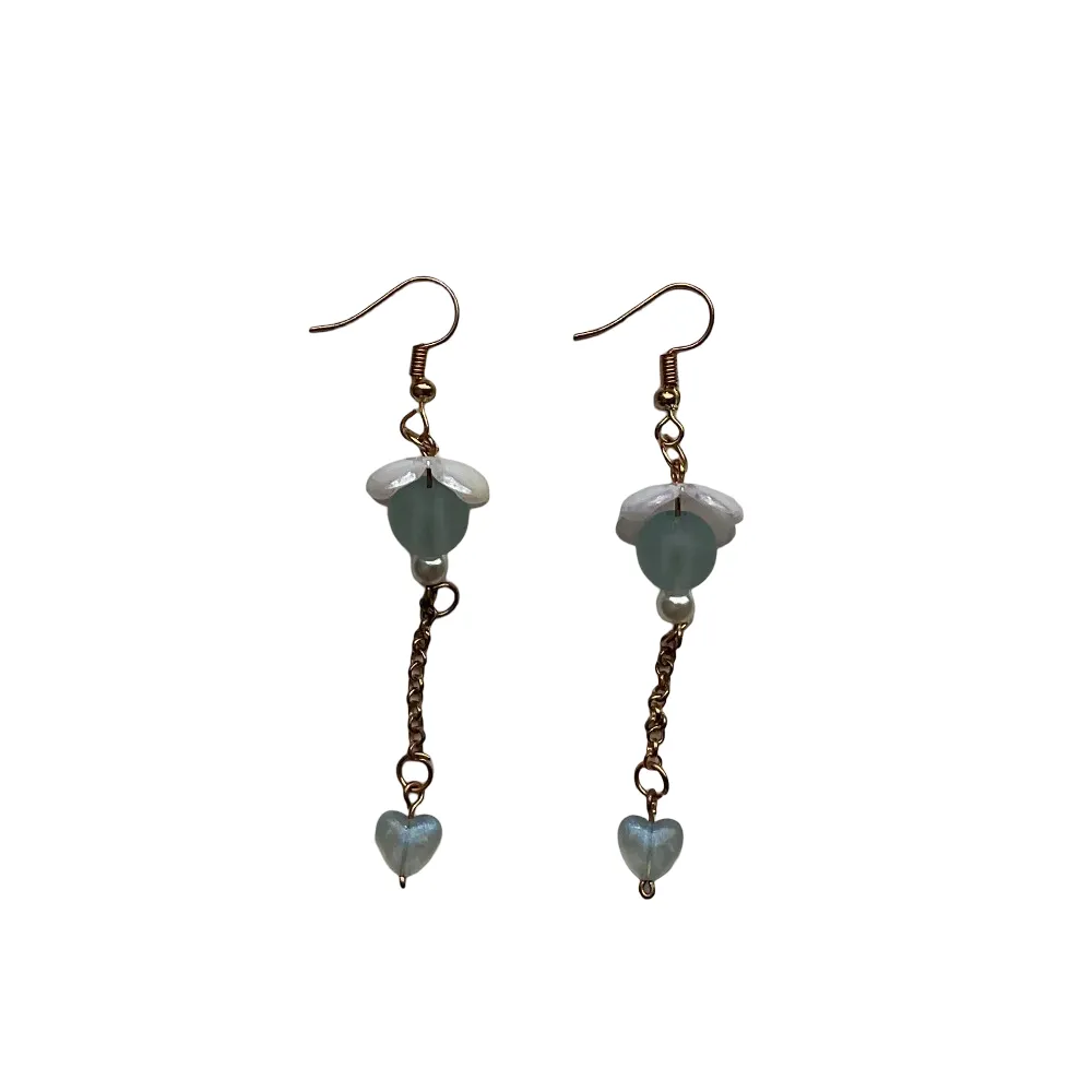 Aros plateado de flor celeste, hecho con materiales de bisutería.