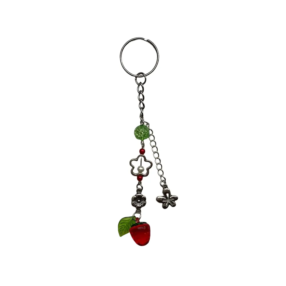 Llavero plateado de frutilla, hecho con materiales de bisutería.